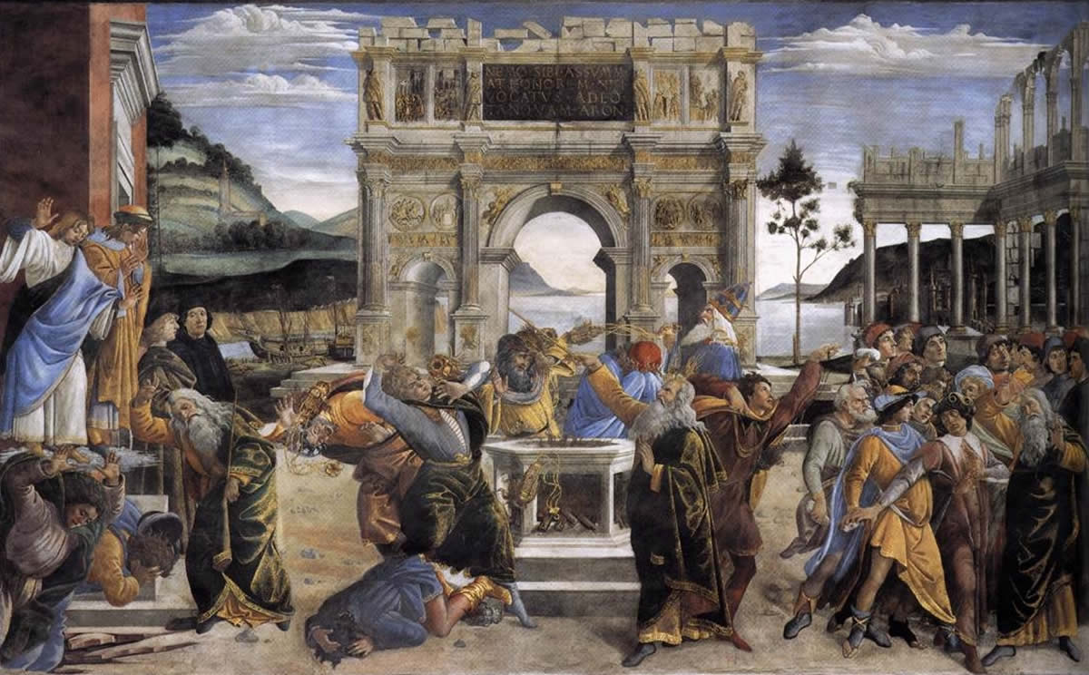 Domenico Ghirlandaio e Cosimo Rosselli (affiancati da Piero di Cosimo, Pinturicchio e Bartolomeo della Gatta), inviati a Roma da Lorenzo de’ Medici quali ambasciatori della prestigiosa arte e cultura fiorentina. Questi furono preceduti dal Perugino