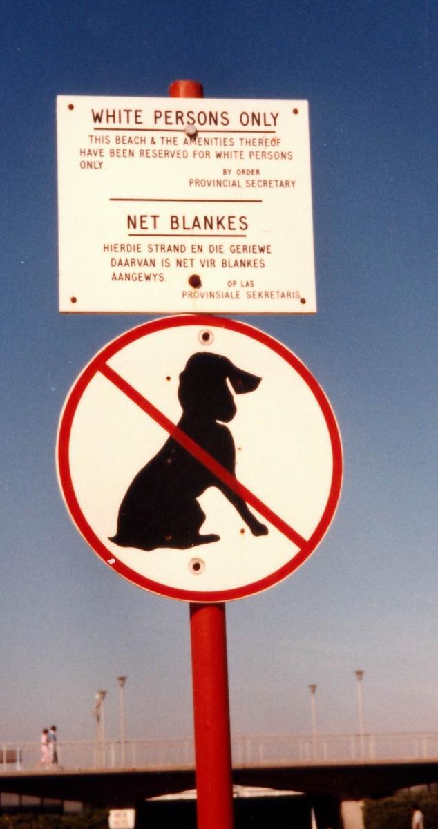 – divieto alle persone di colore diverso di utilizzare le stesse strutture pubbliche, fontane, sale d’attesa, marciapiedi, etc.