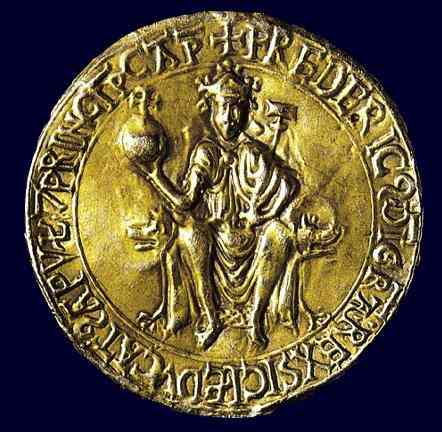 Il 5 giugno del 1224 l’imperatore del Sacro Romano Impero e re di Sicilia Federico II di Svevia fondò l’Università degli Studi di Napoli Federico II, il principale ateneo parteneopeo e uno dei più importanti d’Italia e d’Europa. E’ è la più antica università a essere stata fondata con un provvedimento statale tramite una lettera circolare inviata da Siracusa, creata per volere stesso dell’imperatore. Lo stemma rapresenta il sigillo dello stesso Imperatore.